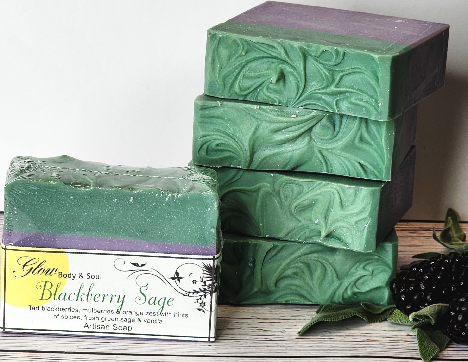 Blackberry Sage soap starts with top notes of tart blackberries, mulberries, and orange zest with hints of spices, fresh green sage and vanilla. The subtle spice mellows out the tartness of the blackberry just perfectly. Fantastic scent!!