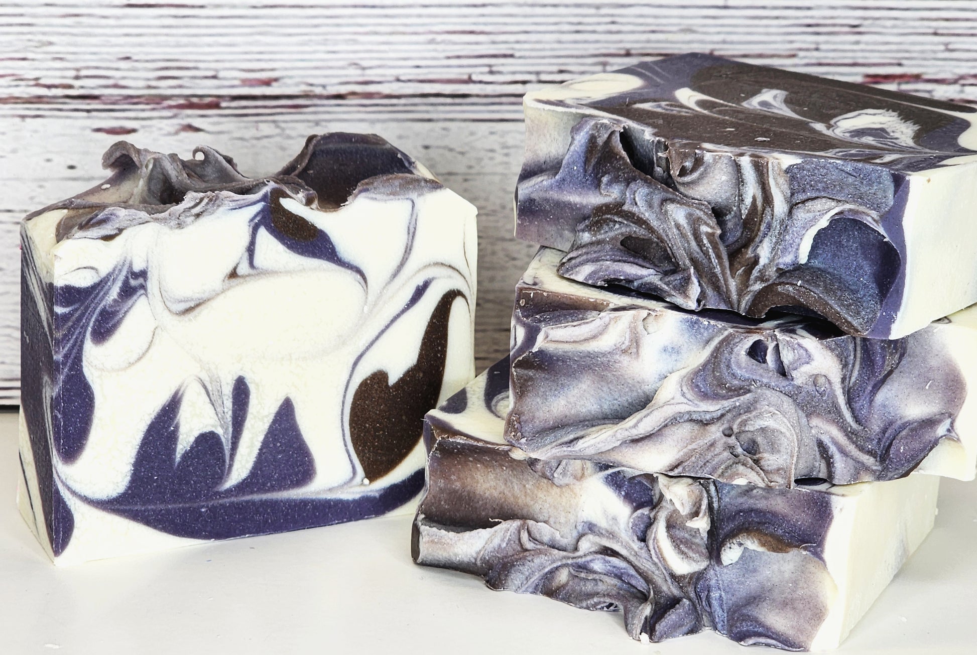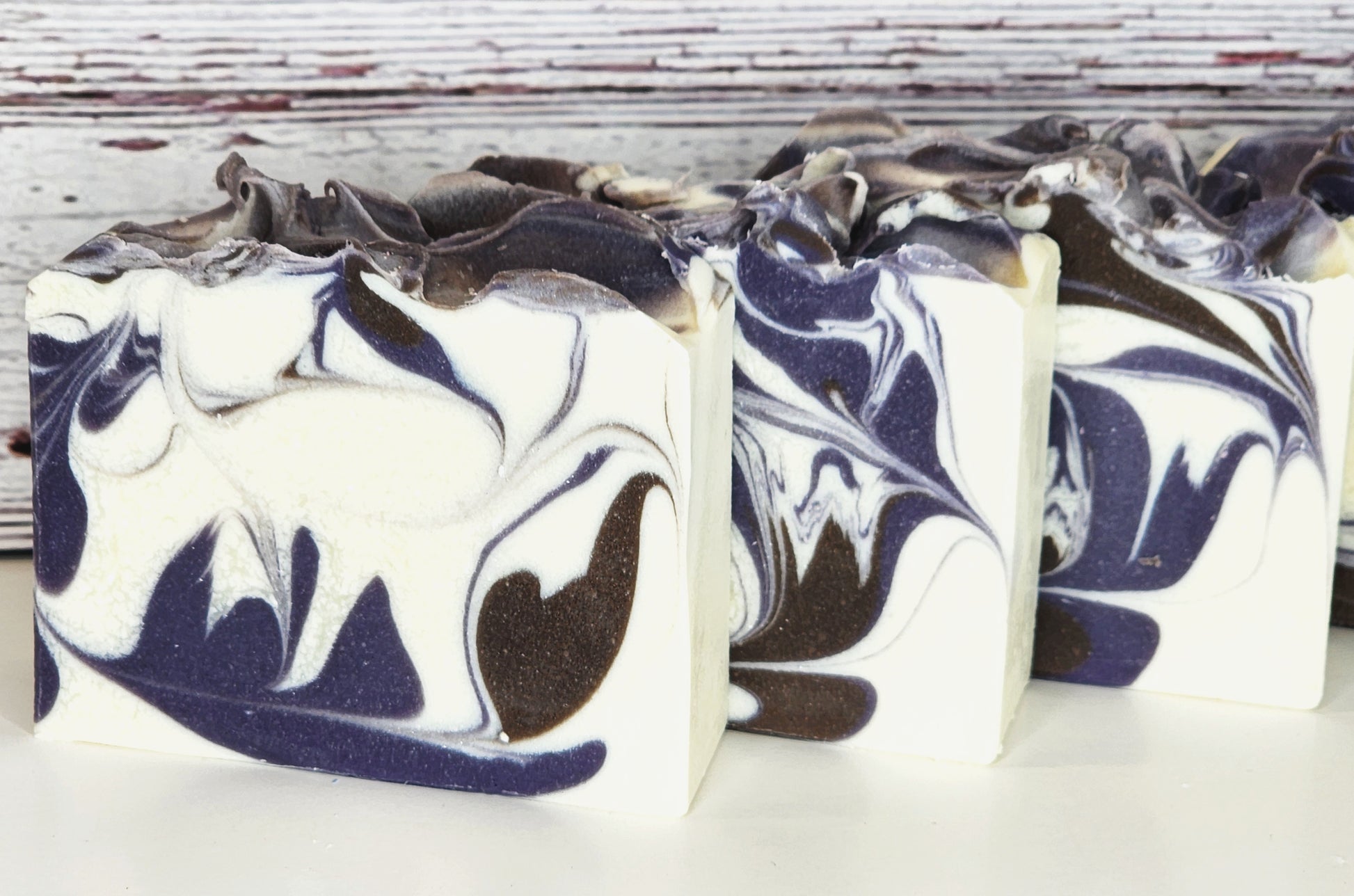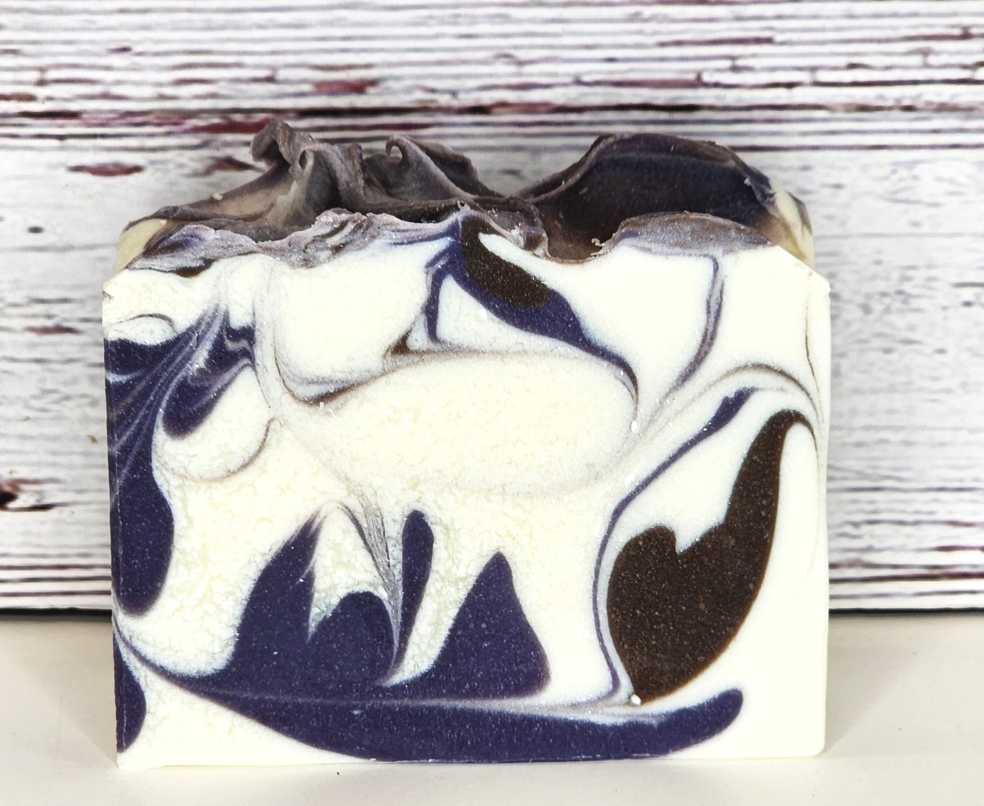 This vegan soap combines the naturally colored soap that contains vanilla with swirls of brown and deep purple. Beautiful!
