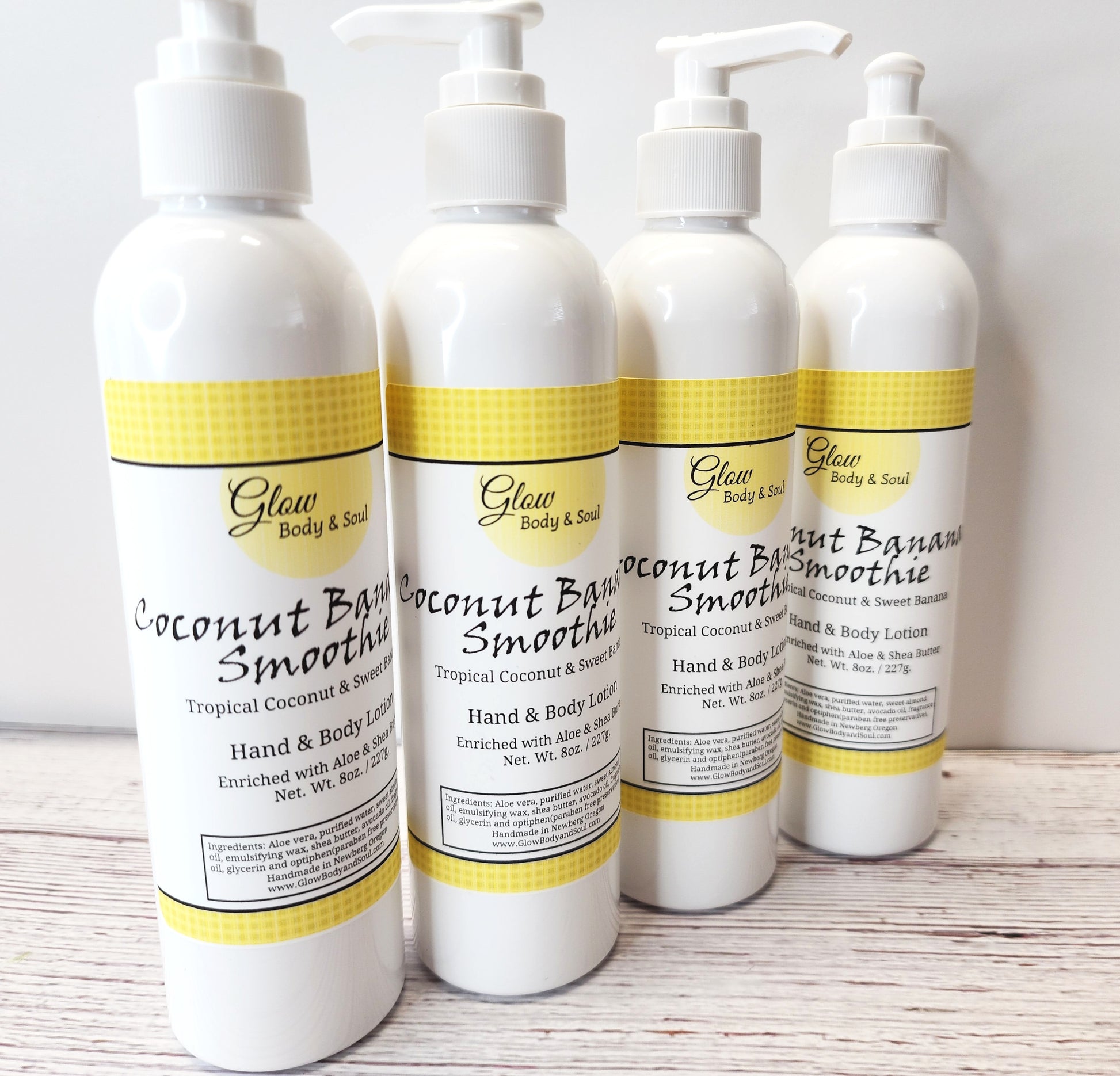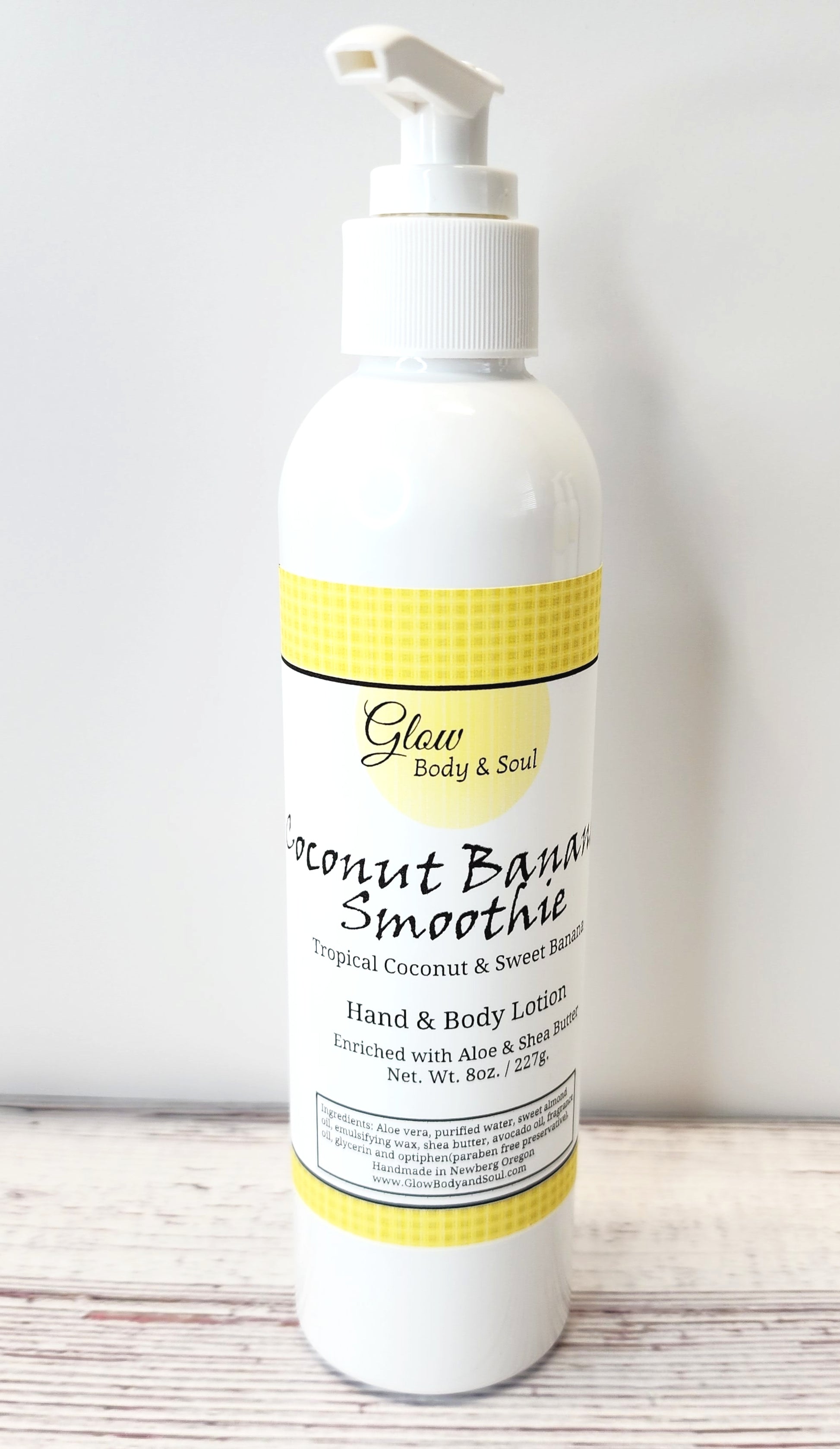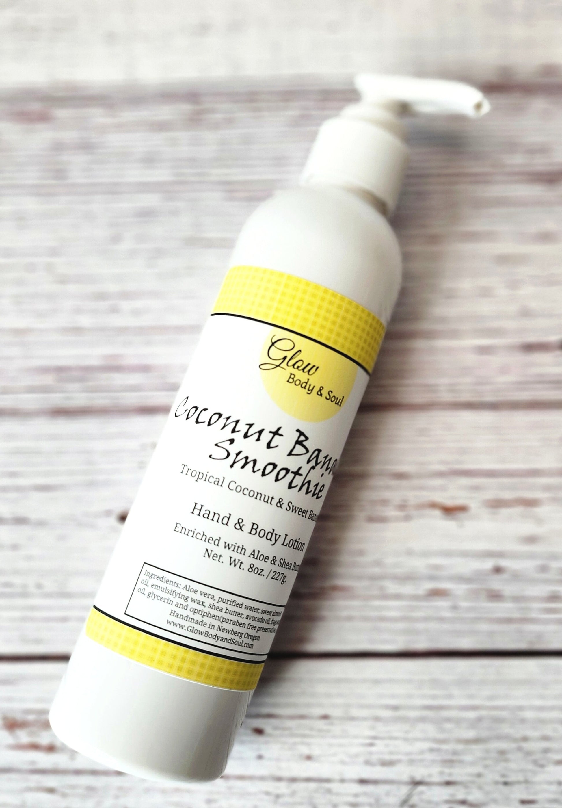 Coconut Banana Smoothie Aloe and Shea Butter Lotion 8 oz. Paraben Free Hand and Body Lotion