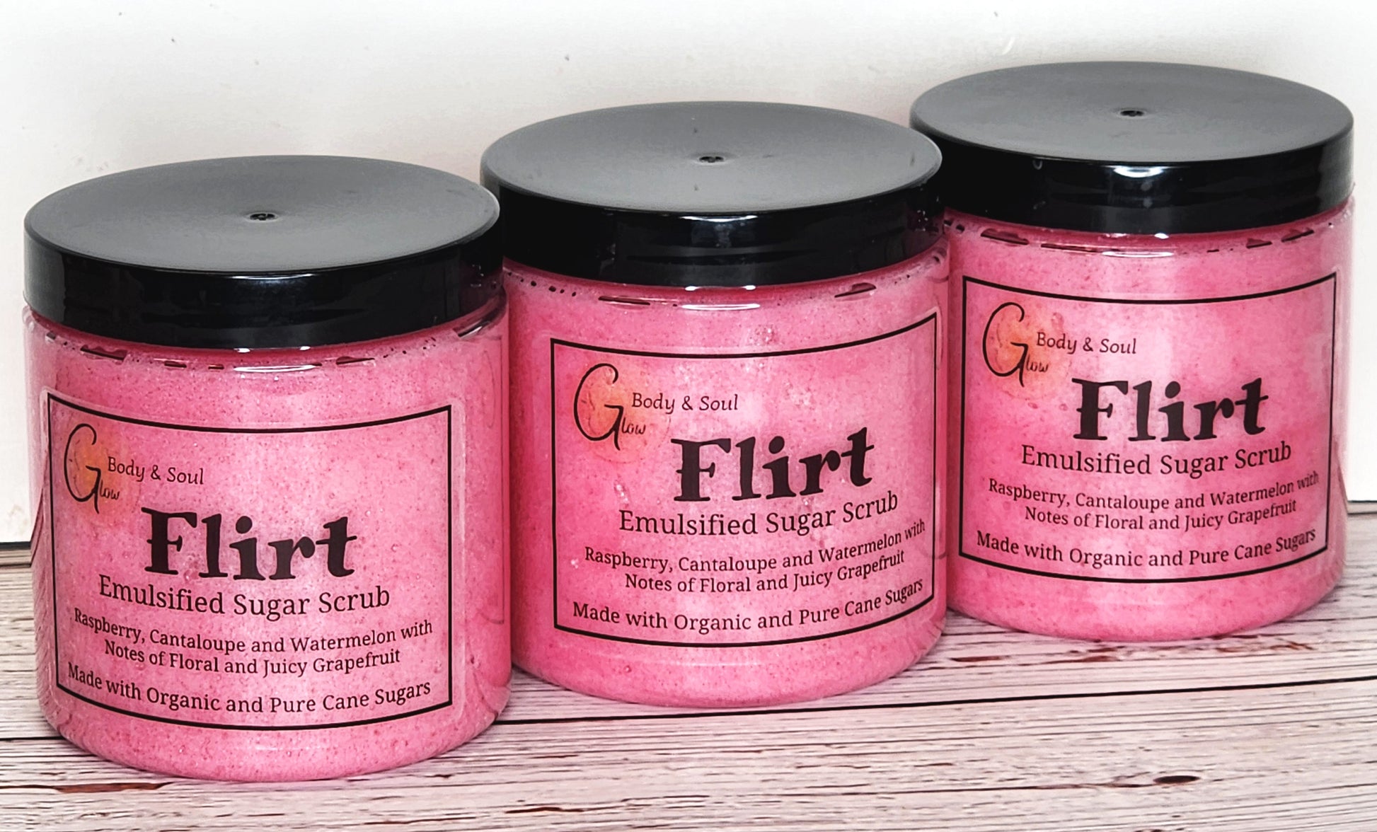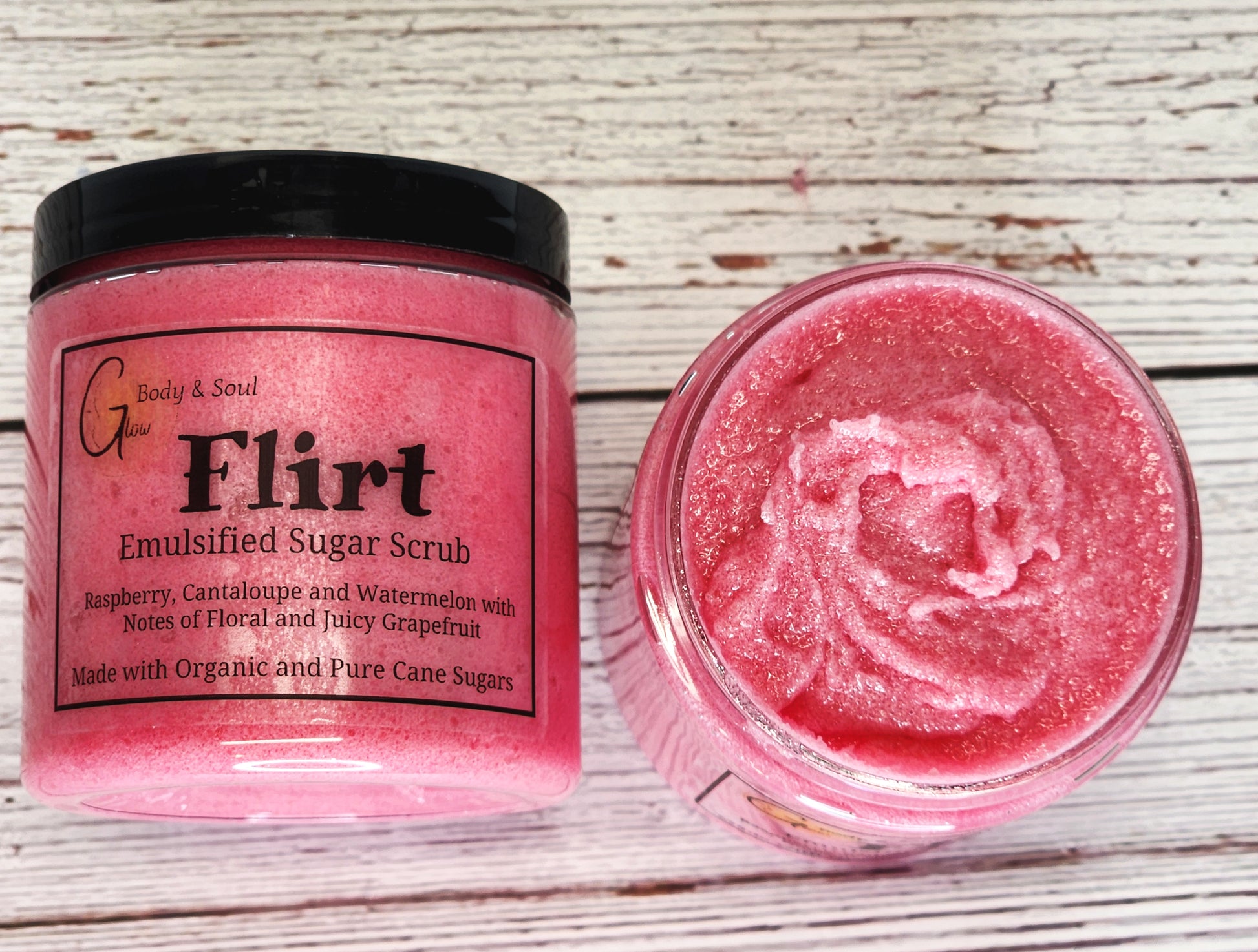 Emulsified Sugar Scrub Flirt Fragrance 10oz. Paraben Free Made with Organic and Pure Cane Sugar