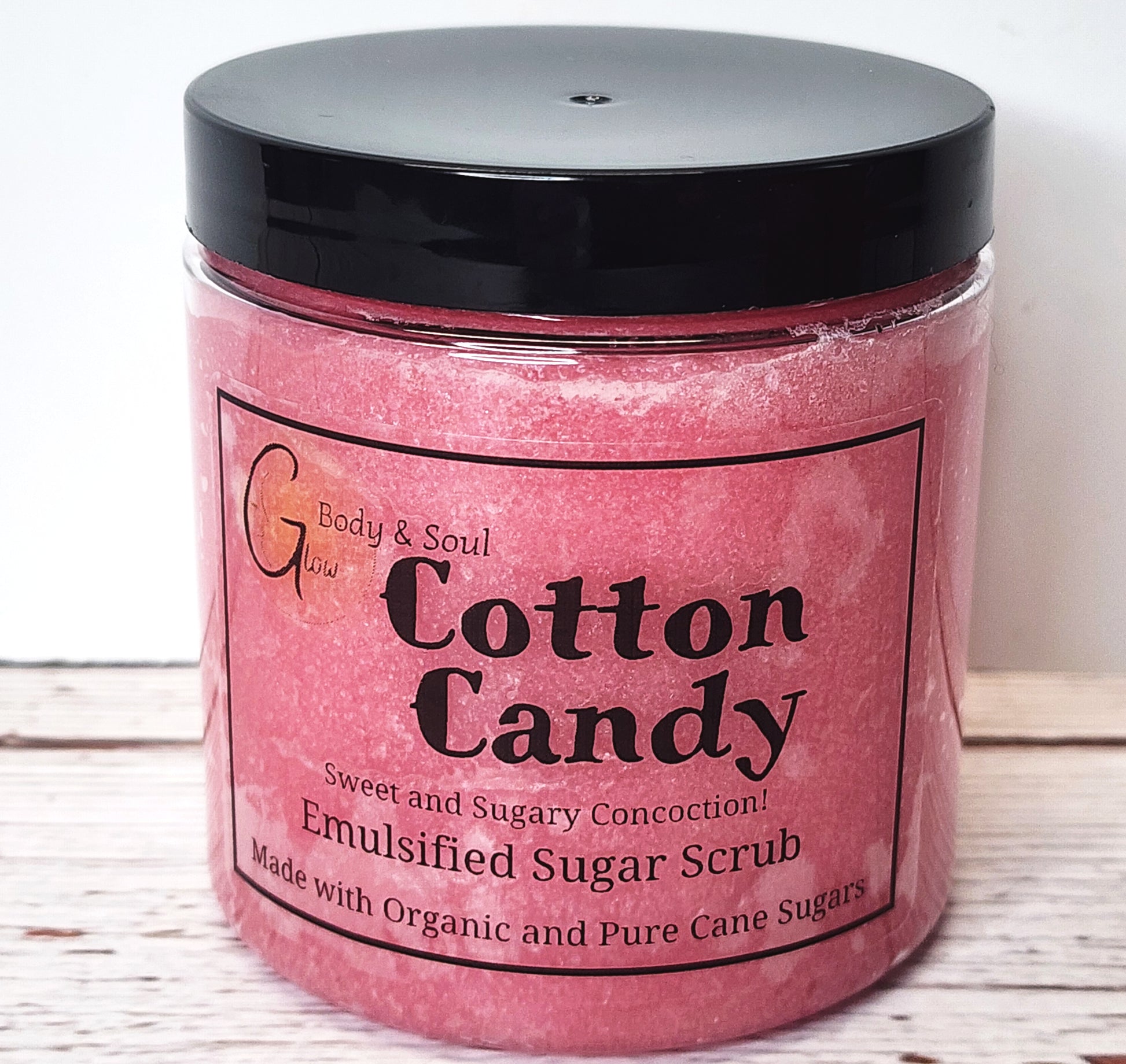 Emulsified Sugar Scrub Cotton Candy Fragrance 10oz. Paraben Free Made with Organic and Pure Cane Sugar