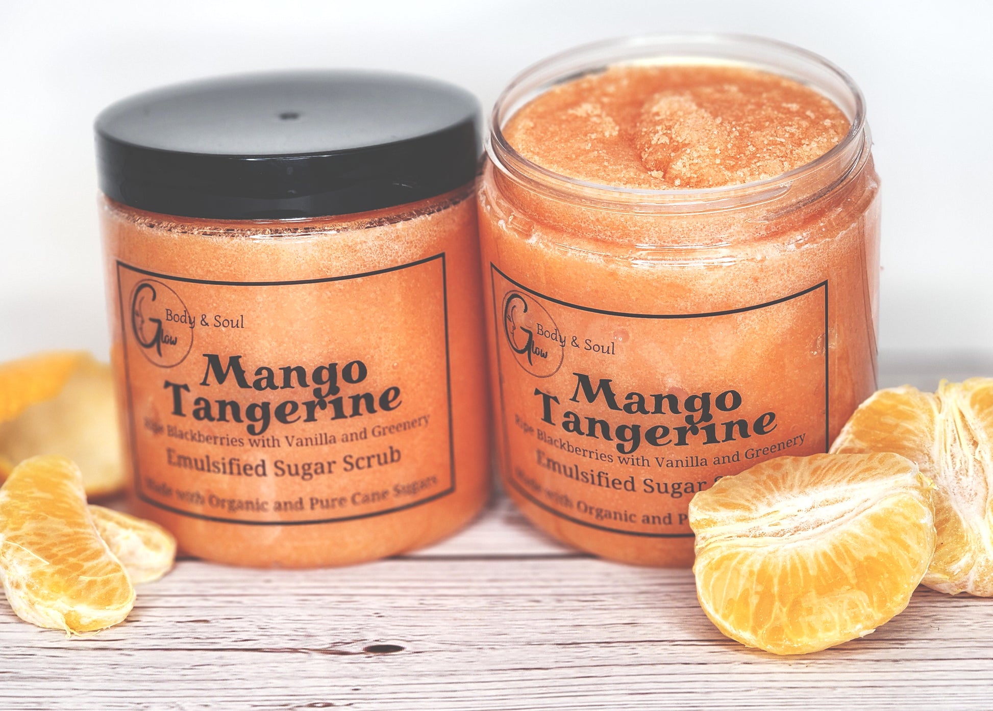 Emulsified Sugar Scrub Mango Tangerine Fragrance 10oz. Paraben Free Made with Organic and Pure Cane Sugar