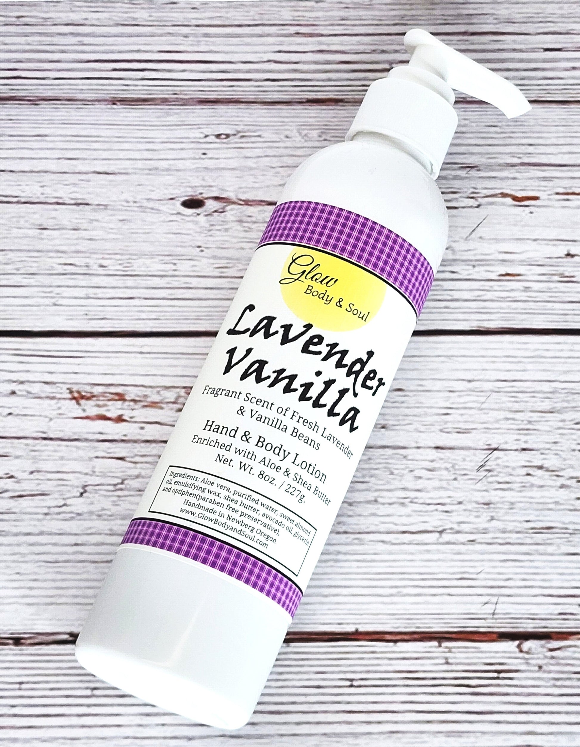 Lavender Vanilla Aloe and Shea Butter Lotion 8 oz. Paraben Free Hand and Body Lotion