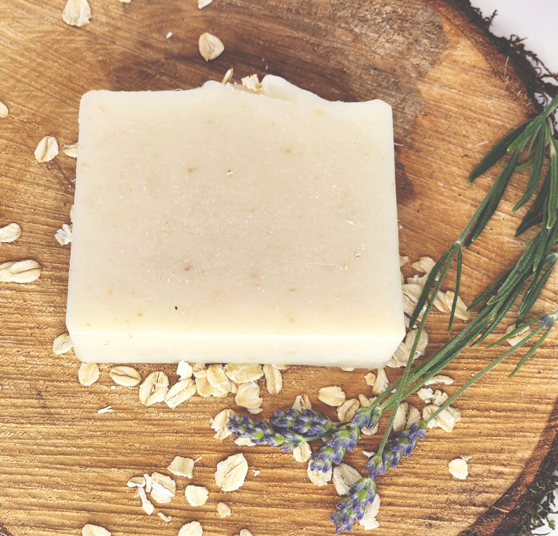 Ingredients: Olive oil, Purified water, Oatmilk, Coconut oil, Shea butter, Sodium hydroxide, Cocoa butter, Castor oil, Grapeseed oil, Sodium lactate, Essential oils of Lavender and Sage, Kaolin clay and oats.