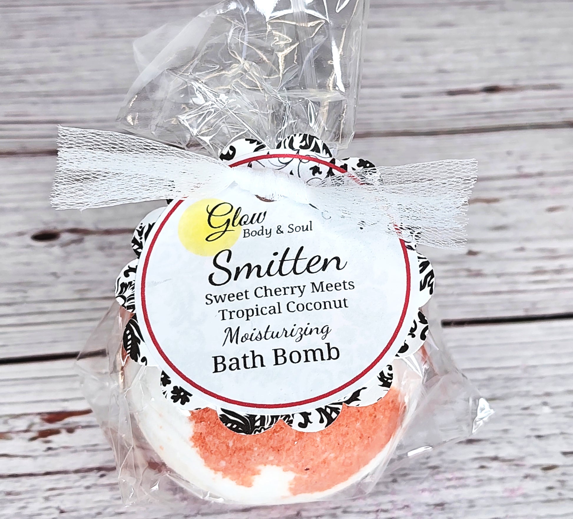 Relax in a fizzy bath scented in our popular Smitten scent. Smitten is a fresh, sweet scrumptious scent, sweet cherry meets tropical coconut. When developing this scent we just knew Smitten was the perfect name, the combination is fantastic!
