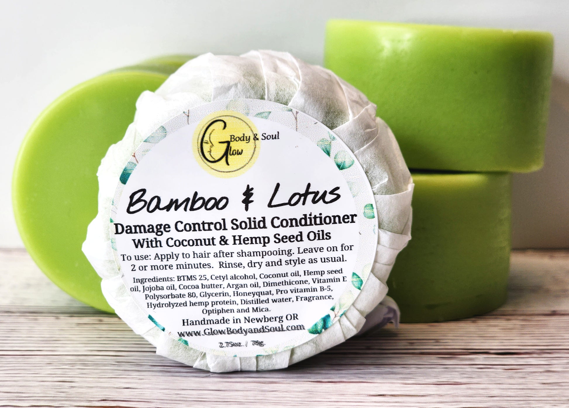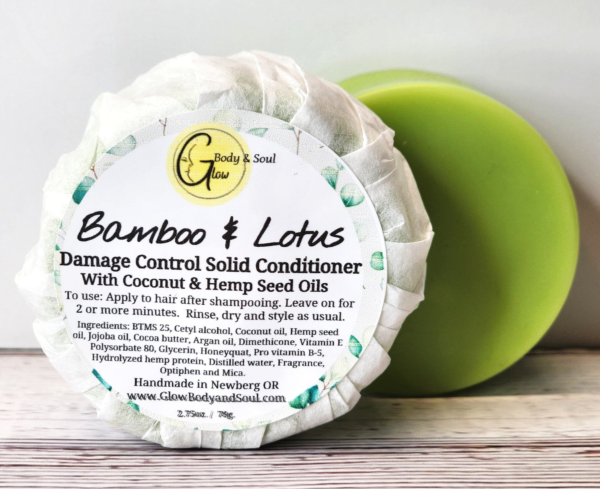 Solid Hair Conditioner Bar Bamboo and Lotus | Hemp seed conditioner Damage Control | Minimal Packaging Hair Conditioner Bar