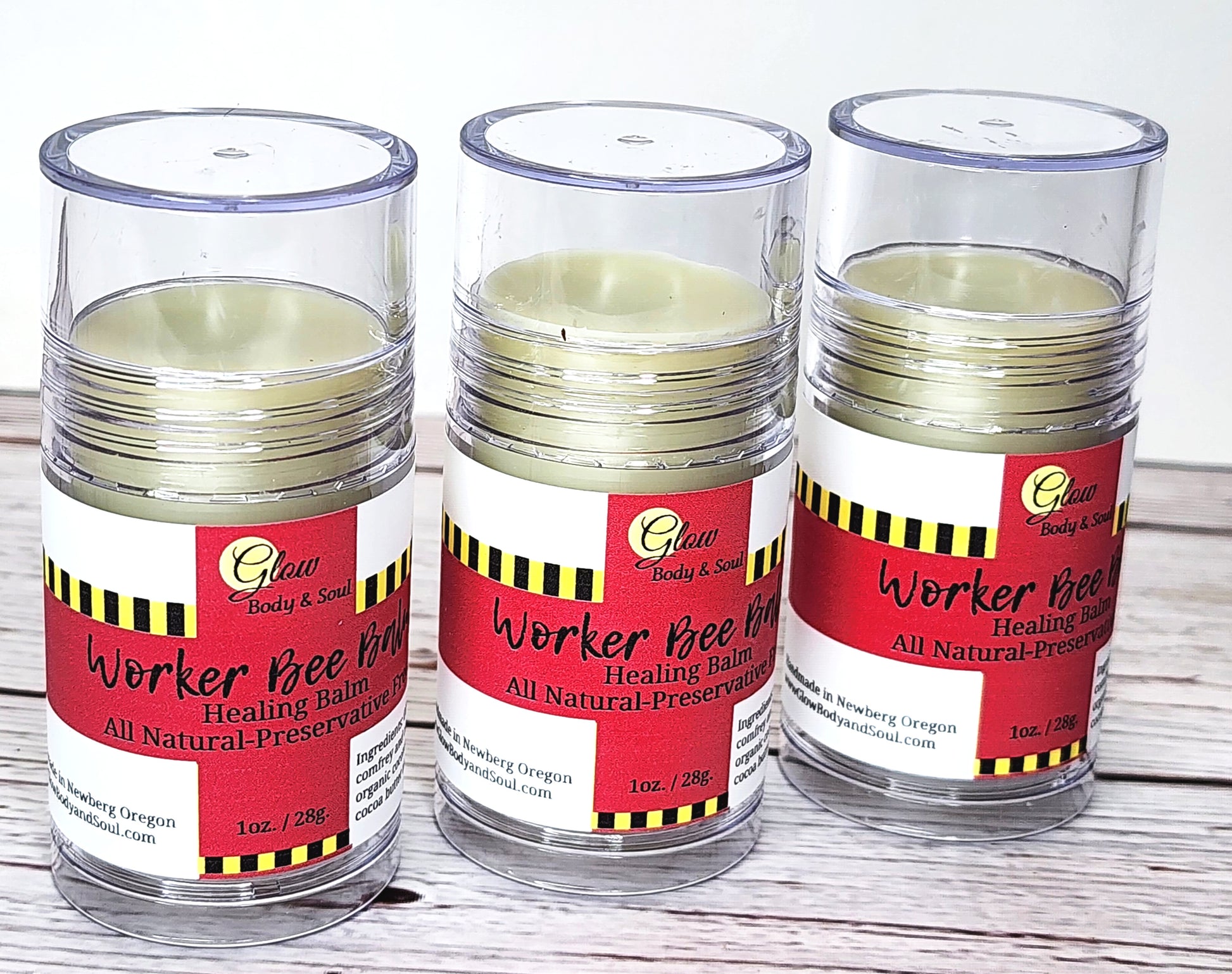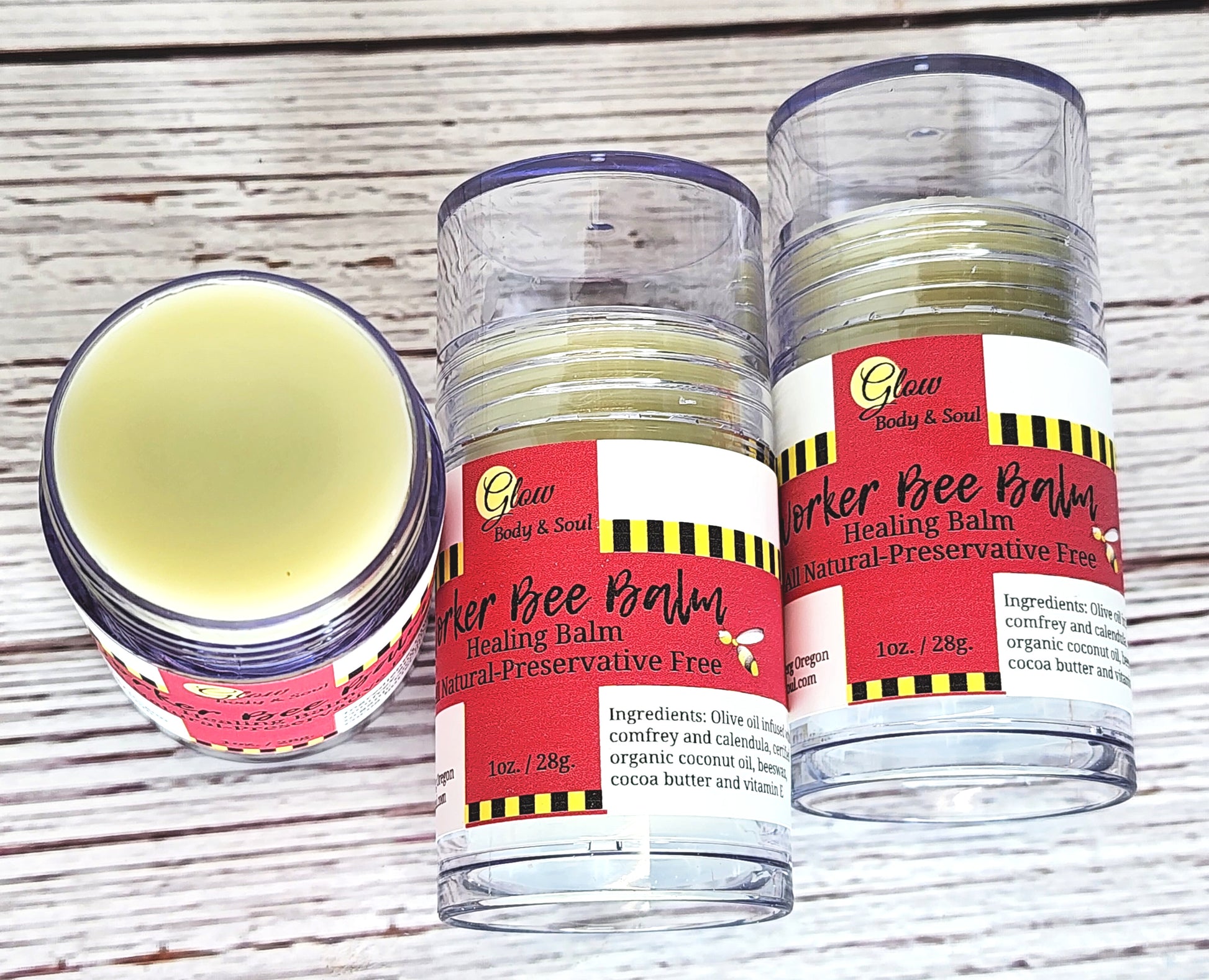 Worker Bee is an all-natural balm conveniently packaged in a push-up tube. This balm is fantastic for dry skin and so much more. This hand poured; solid balm lasts a very long time. Extremely portable, carry one in your purse, toolbox or with your camping gear!